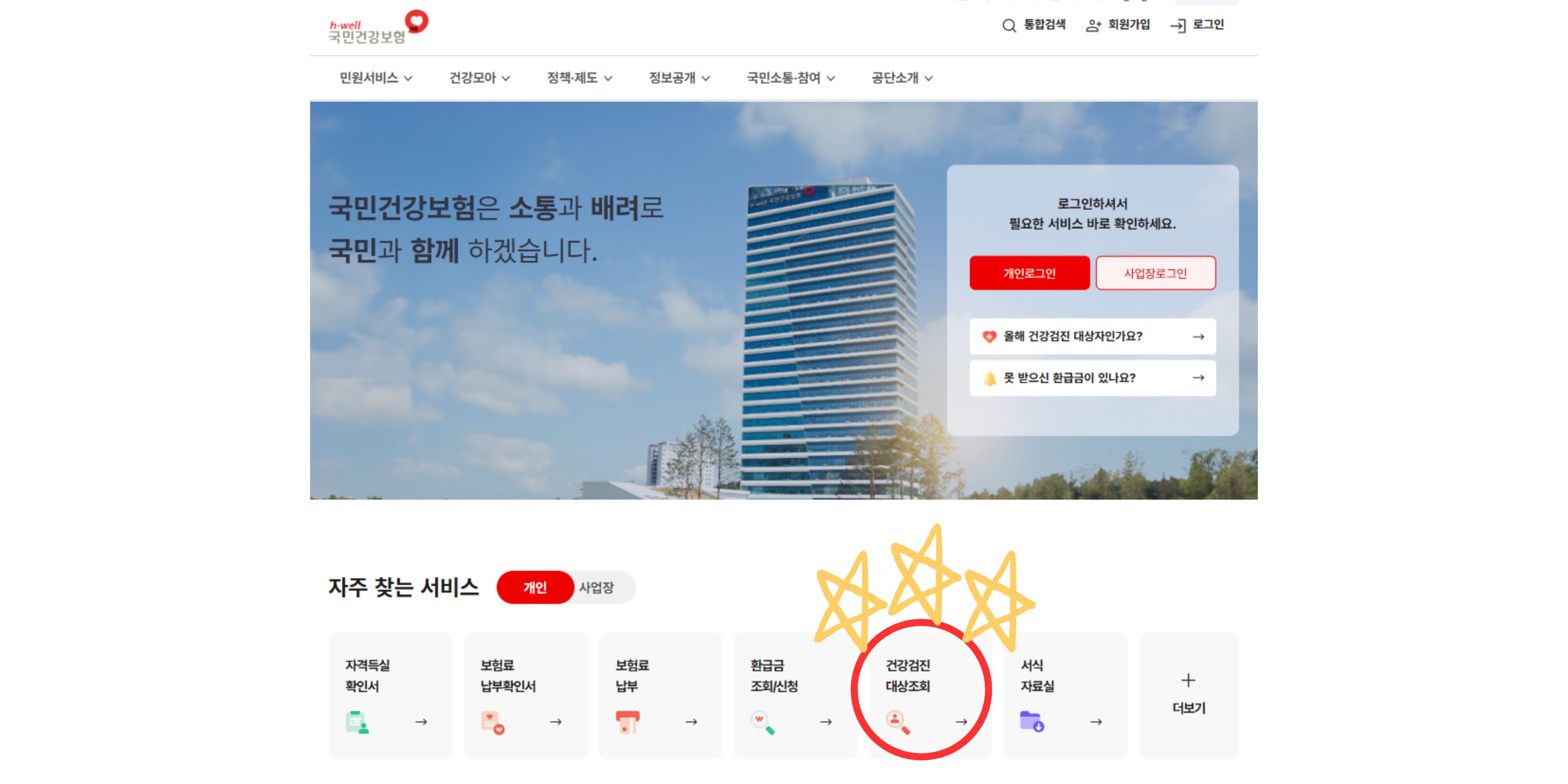 - 국민건강보험공단 홈페이지 접속: 국민건강보험공단 홈페이지에 접속한 후, 건강검진 대상자 조회 메뉴를 클릭해봐. 공동인증서(구 공인인증서) 등으로 로그인하면 쉽게 대상 여부를 확인할 수 있어.